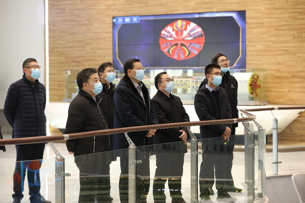 随后,何院士一行来到深达33米的工作井下察看了工程建设进展,就盾构机掘进情况进行了详细交流。该工程采用国之重器"京华号"超大盾构机,最大开挖直径16m,总长149m,总重4350t,是中国迄今研制的最大直径盾构机。盾构机自京榆旧线北侧始发井向南掘进、穿越中间井、到达万盛南街南侧接收井,计划于2023年5月隧道贯通。