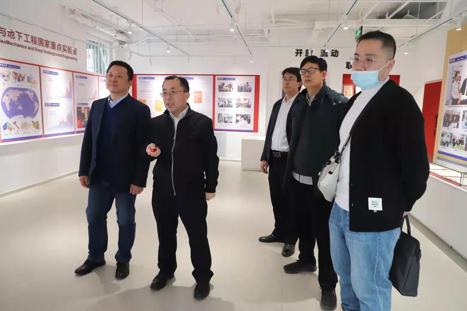 与会人员参观了中国岩石力学与工程学会和深部岩土力学与地下工程国家重点实验室,观看了学会和深部国家重点实验室科技创新宣传视频,学会兼职副秘书长陶志刚教授做了题为"滇西昌宁软岩隧道NPR锚索高预应力补偿及吸能控制关键技术"的学术报告。双方围绕"科技创新服务国家重大工程"主题开展了深入交流。