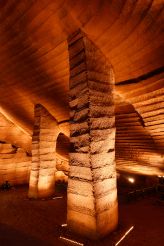龙游石窟,位于浙江省龙游县城北3km处的凤凰山南麓,于1992年发现。在方圆0.38k㎡的区域内规律地分布着24个洞室。洞室面积从1000至3000平方米不等,多数洞室从矩形顶洞洞口开始垂直向下延伸,整个洞室取斜顶加岩柱结构,似"倒斗型"。洞内均科学地分布1~4根巨大的"鱼尾形"石柱,与洞顶浑然一体,洞壁、洞顶和石柱上都均匀地留下古人似乎带有装饰意图的凿痕。其精心的规划布局,精湛的开凿工艺,精妙的石室结构,精致的洞窟凿痕,让世人惊叹,引起了全国乃至全世界的众多史学家、考古学家、建筑学家地质学家的研究兴趣。由于其具有较高的文物价值,于2011年被评为省级文物保护单位,2013年5月被国务院核定为国家级文物保护单位。