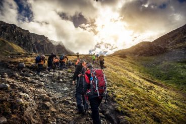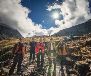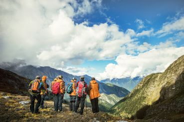 摄于2014年10月,时任四川省地质行业专家黄润秋、张世殊、裴向军等专家一行队伍赴西藏派墨公路沿线勘察,冒雨登山、涉水,沿线考察在建的派墨公路地质条件,判别地质灾害等问题,为派墨公路的成功建设贡献了智慧与力量。