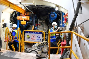 中铁十四局承建的深(深圳)江(江门)铁路珠江口隧道,横穿海底地质复杂地段,盾构机正以每天6到8米的速度在海底攻坚掘进。深江铁路把深圳、东莞、广州、中山、江门这五座大湾区城市更紧密连接在一起,深圳前海自贸区与广州南沙自贸区半小时高铁互联互通,助力打造“轨道上的大湾区”。